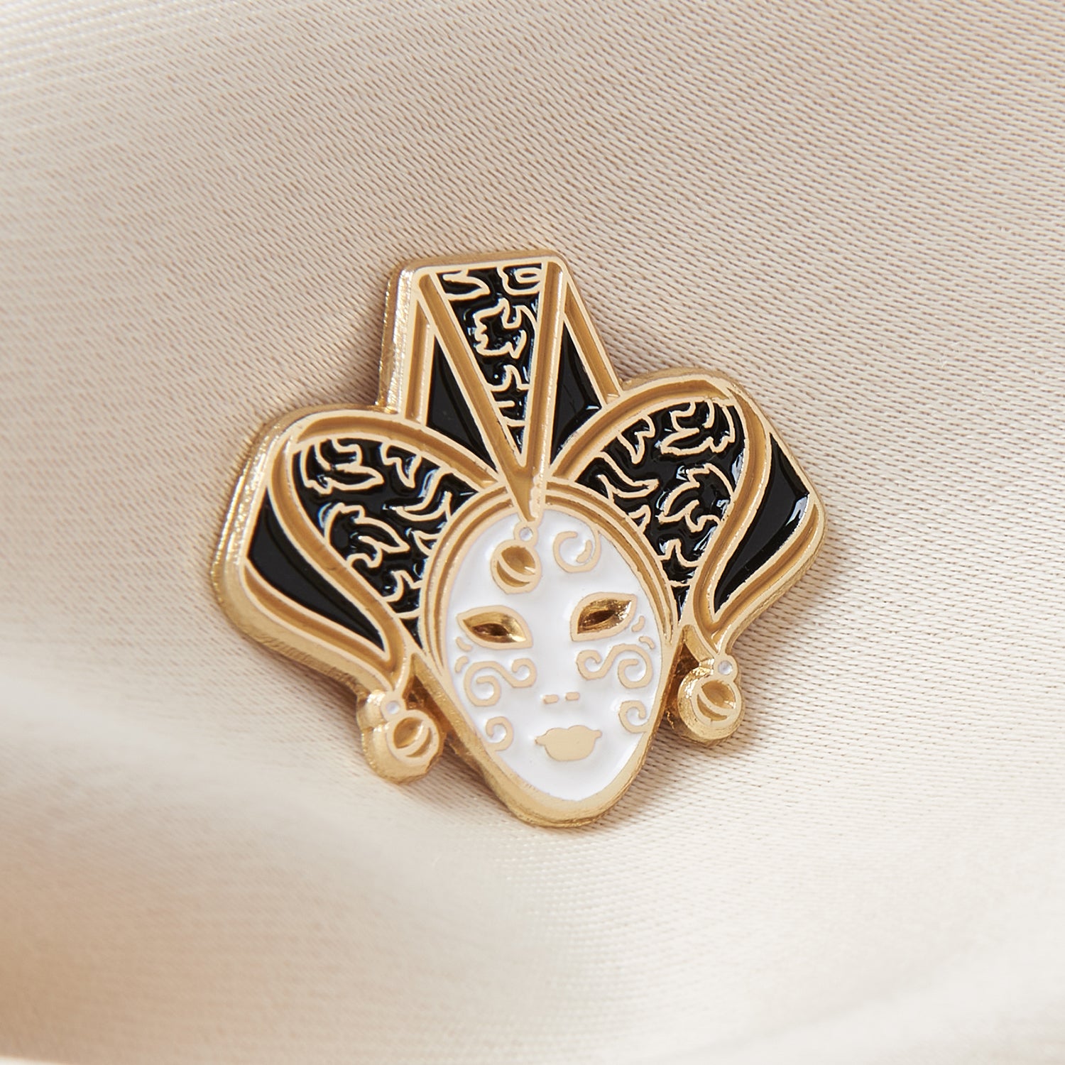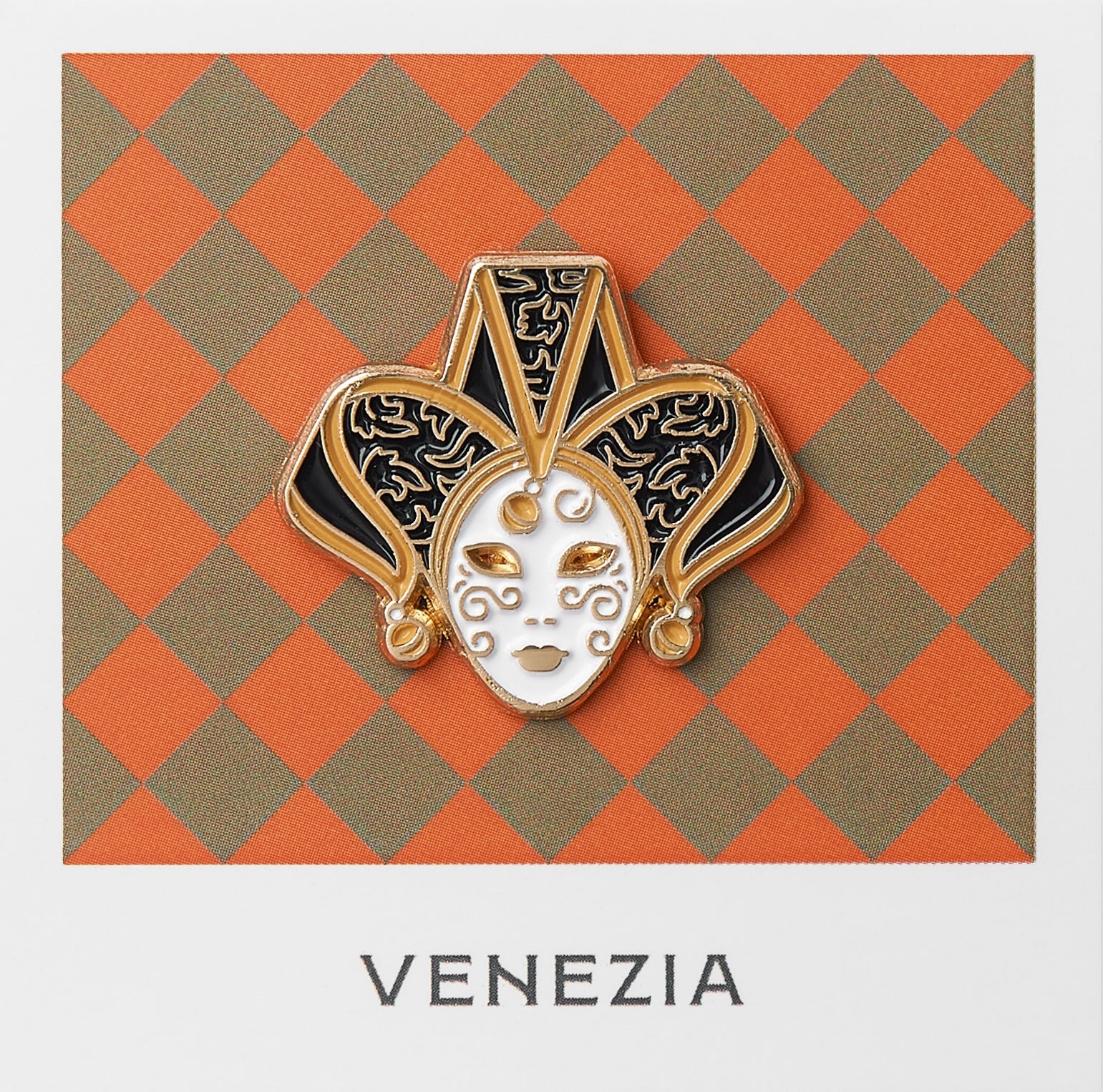 A mask steeped in mystery! Metal pin featuring the classic volto mask, a timeless symbol of Venice’s Carnival elegance.