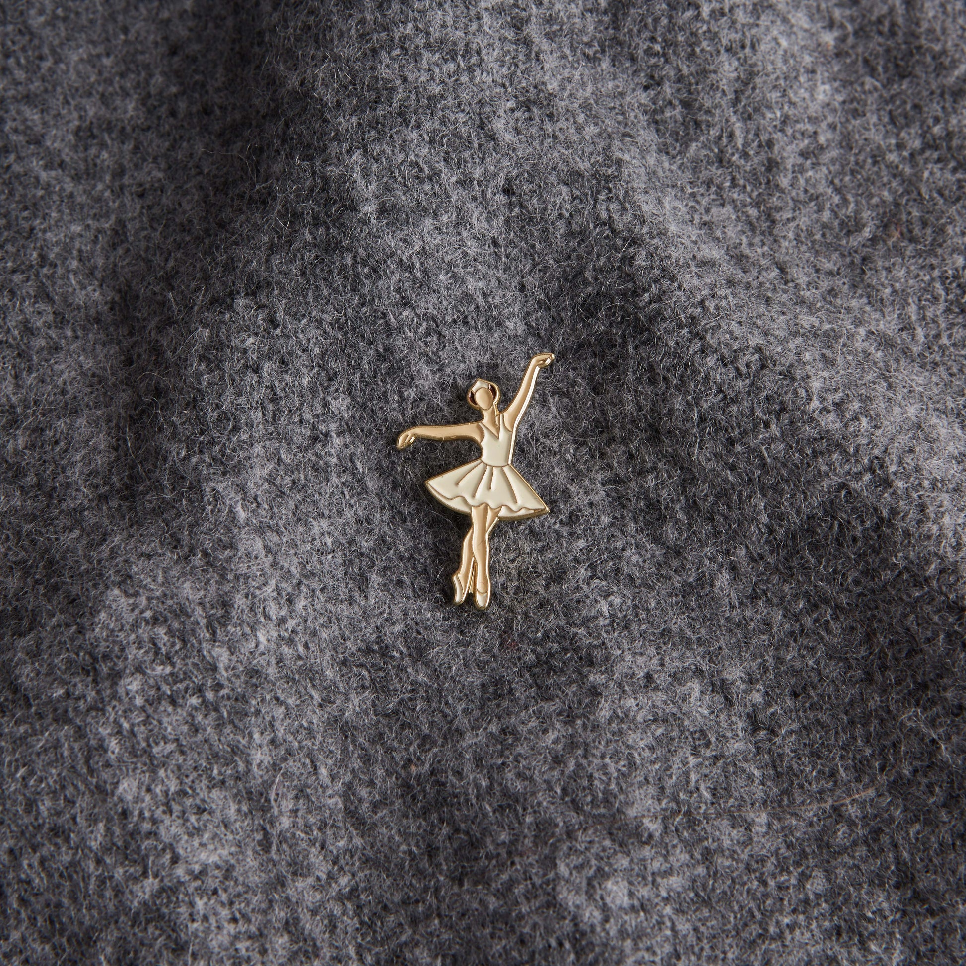 On the stage of the Theater. Metal pin in the shape of a ballerina.
