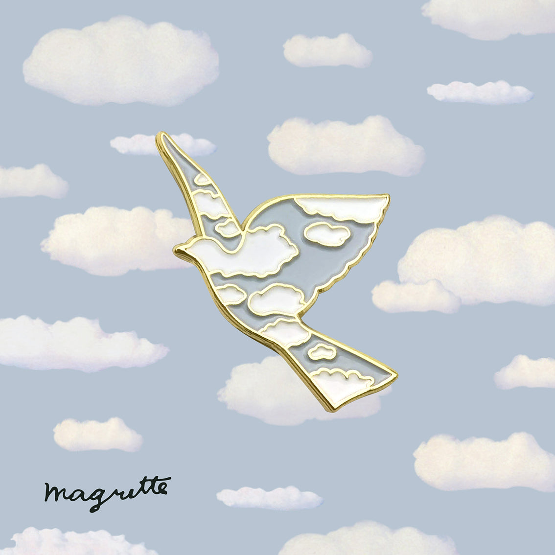 A surreal masterpiece in flight! Metal pin inspired by L’oiseau de ciel, 1966, a thought-provoking and dreamlike design.
