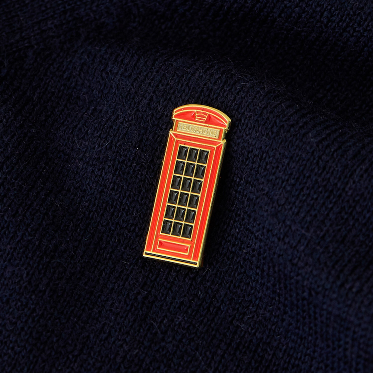 London calling! Metal pin in the shape of the classical red telephone booth.