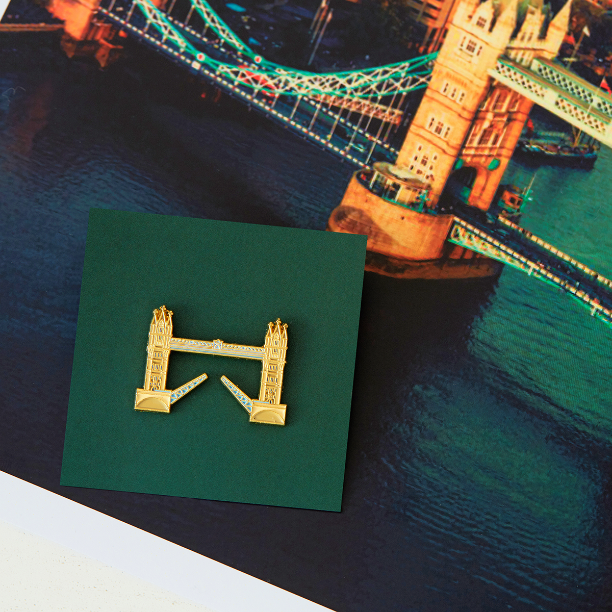 London Bridge is falling down, falling down, falling down… No way! Metal pin in the shape of the steady Bridge.