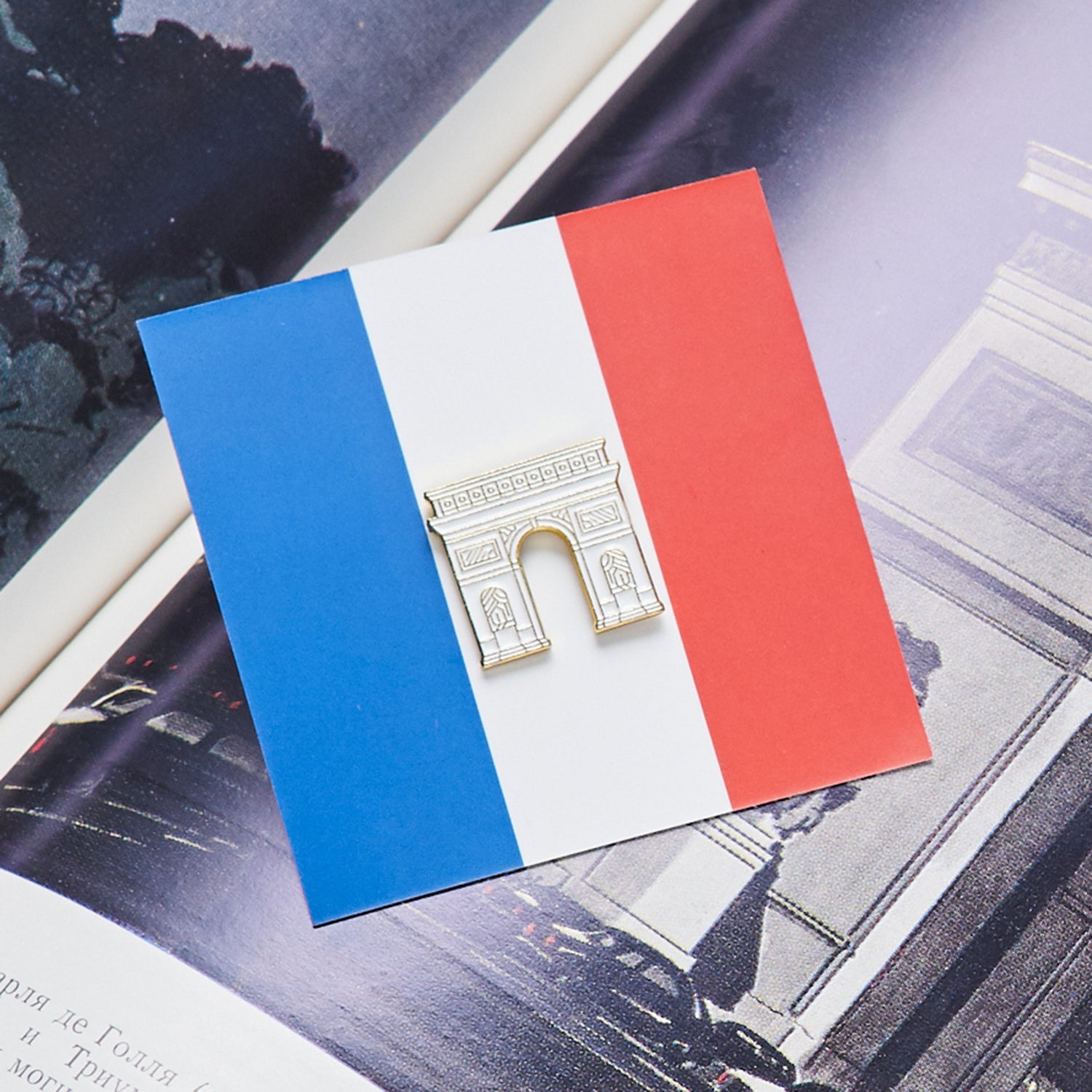 Timeless and elegant! Metal pin in the shape of a graceful Arc de Triomphe, celebrating France's iconic monument of honour.