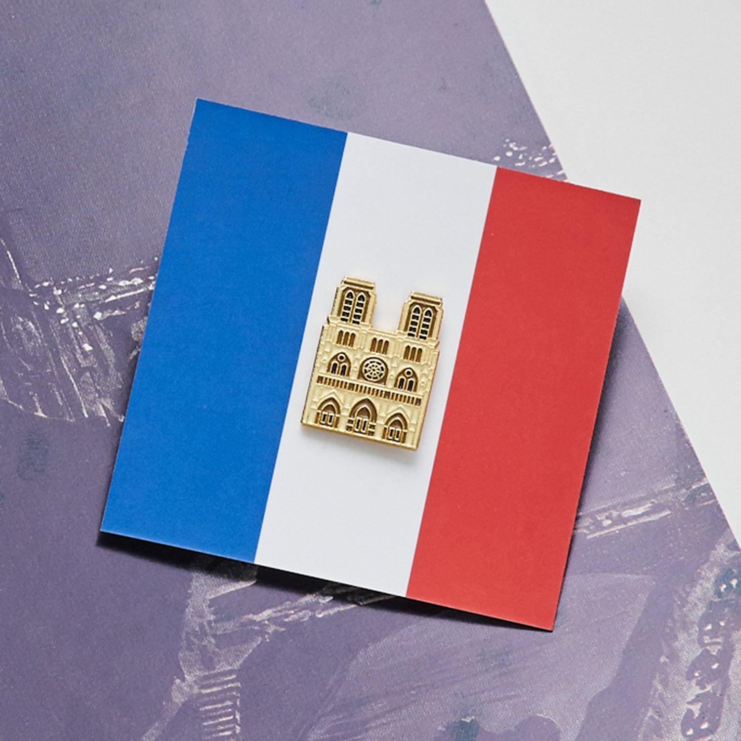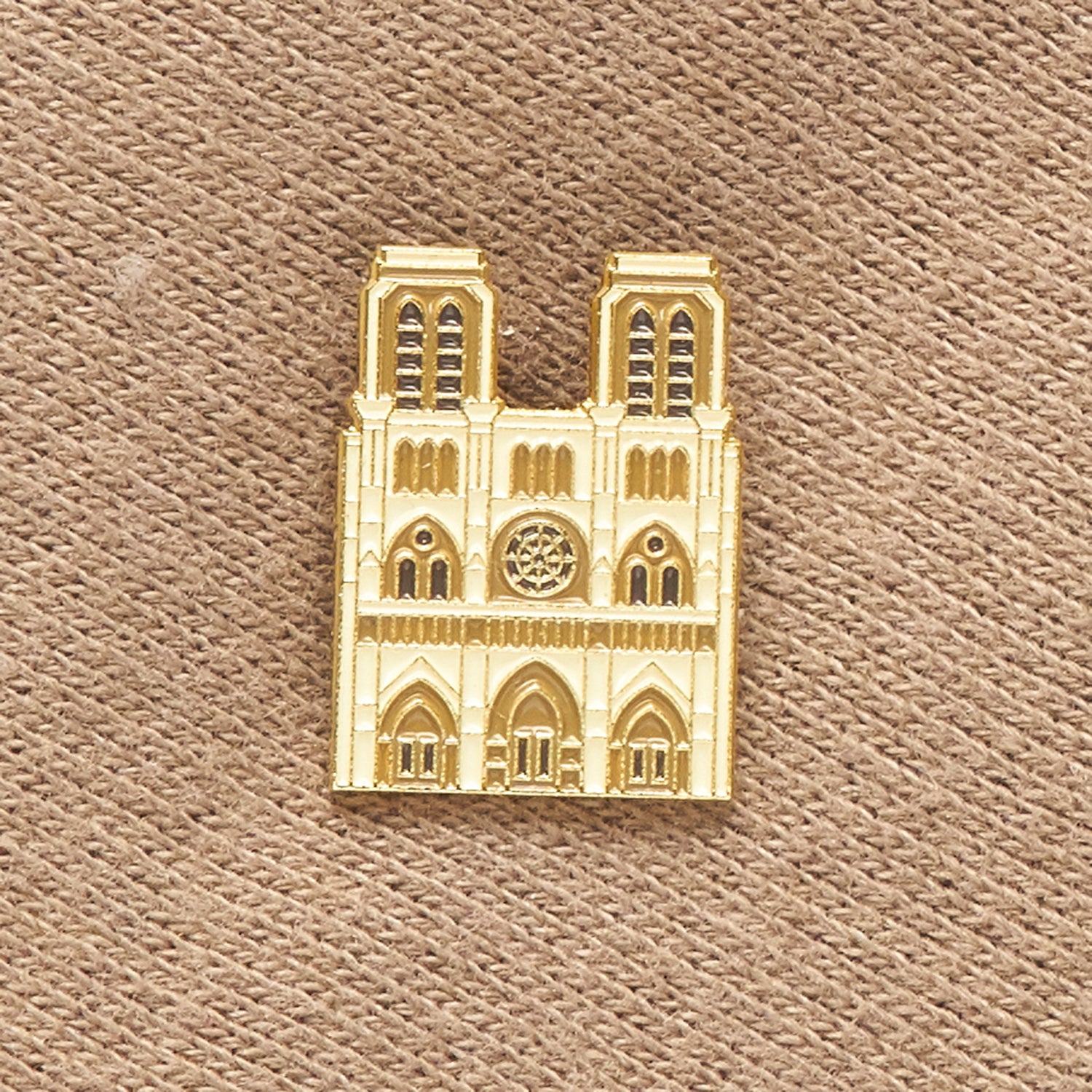 Gothic grandeur! Metal pin in the shape of Notre-Dame Cathedral, capturing its timeless beauty.