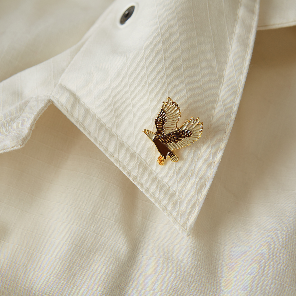 Proud, fast and keen. Metal pin in the shape of an eagle.