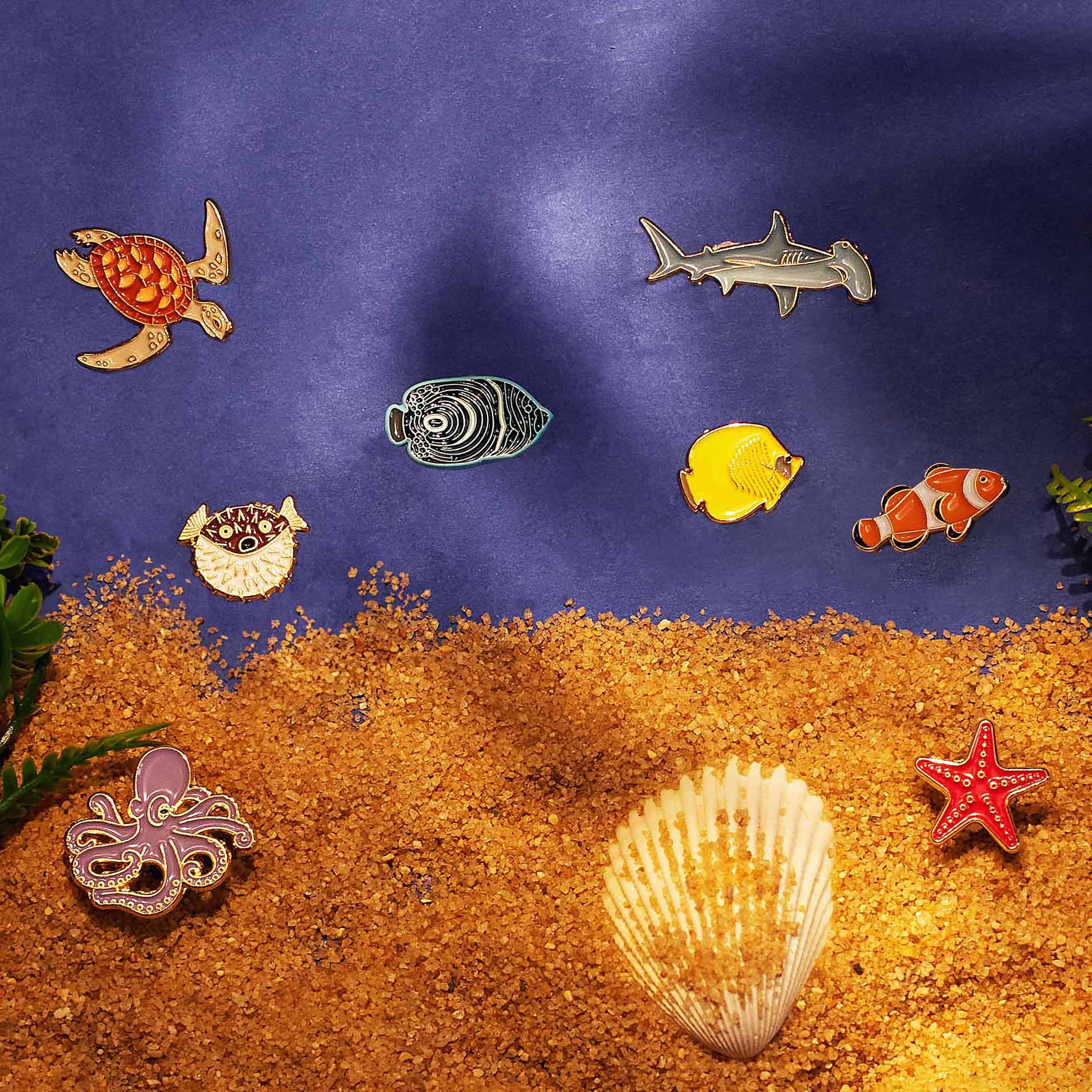 Spiky yet delightful. Metal pin in the shape of a fugu (pufferfish).