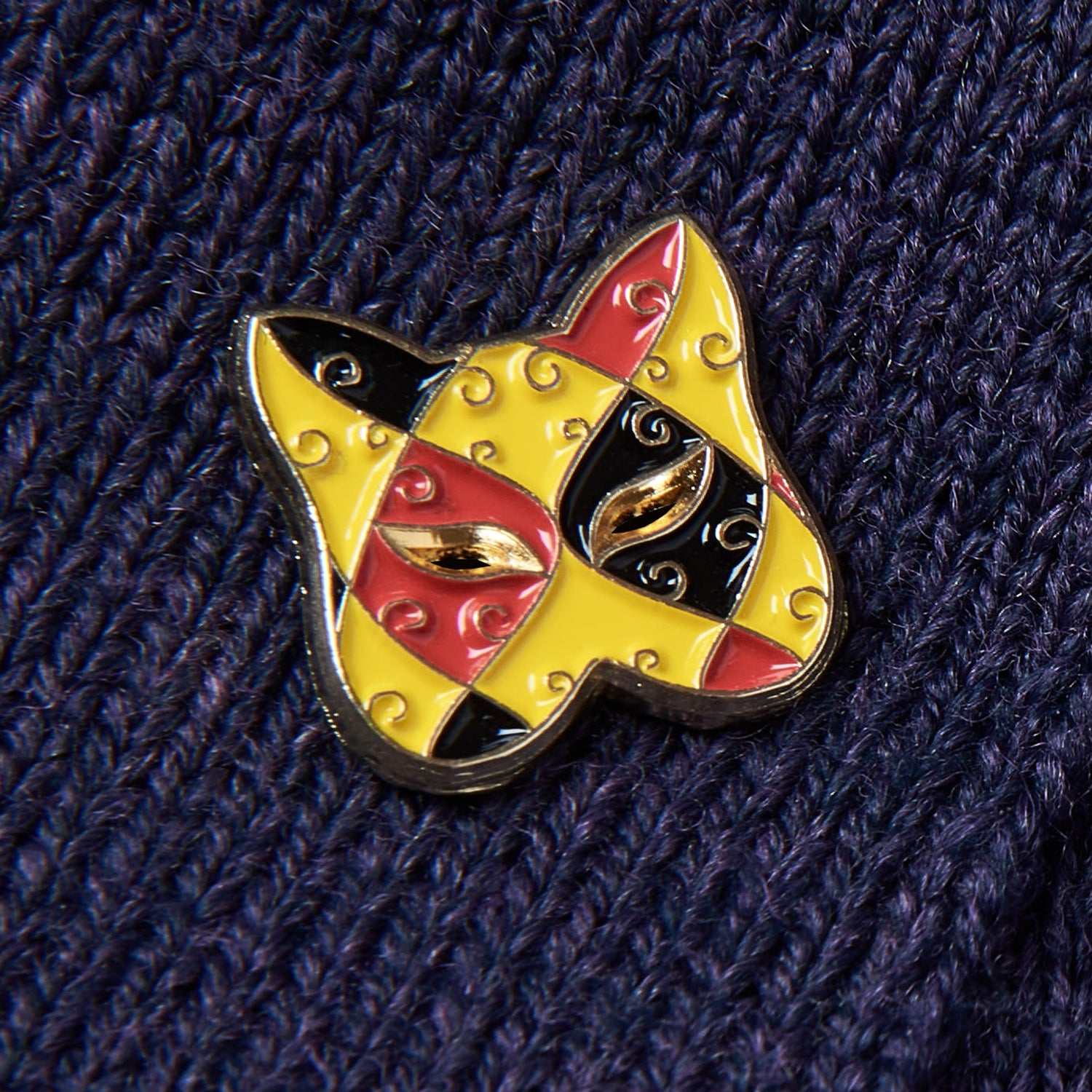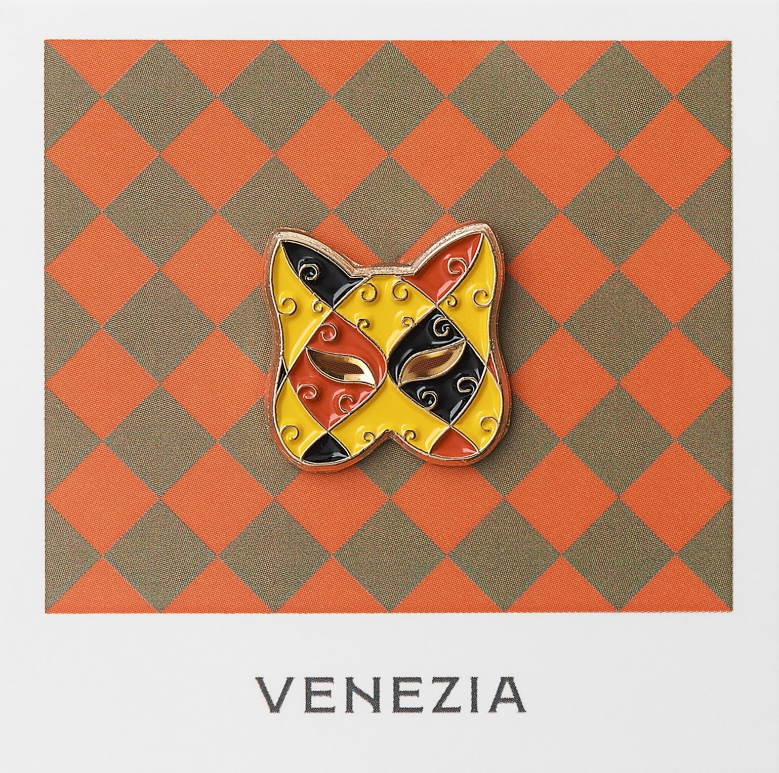 A playful Venetian icon! Metal pin depicting the gnaga mask, celebrated for its quirky catlike design rooted in tradition.
