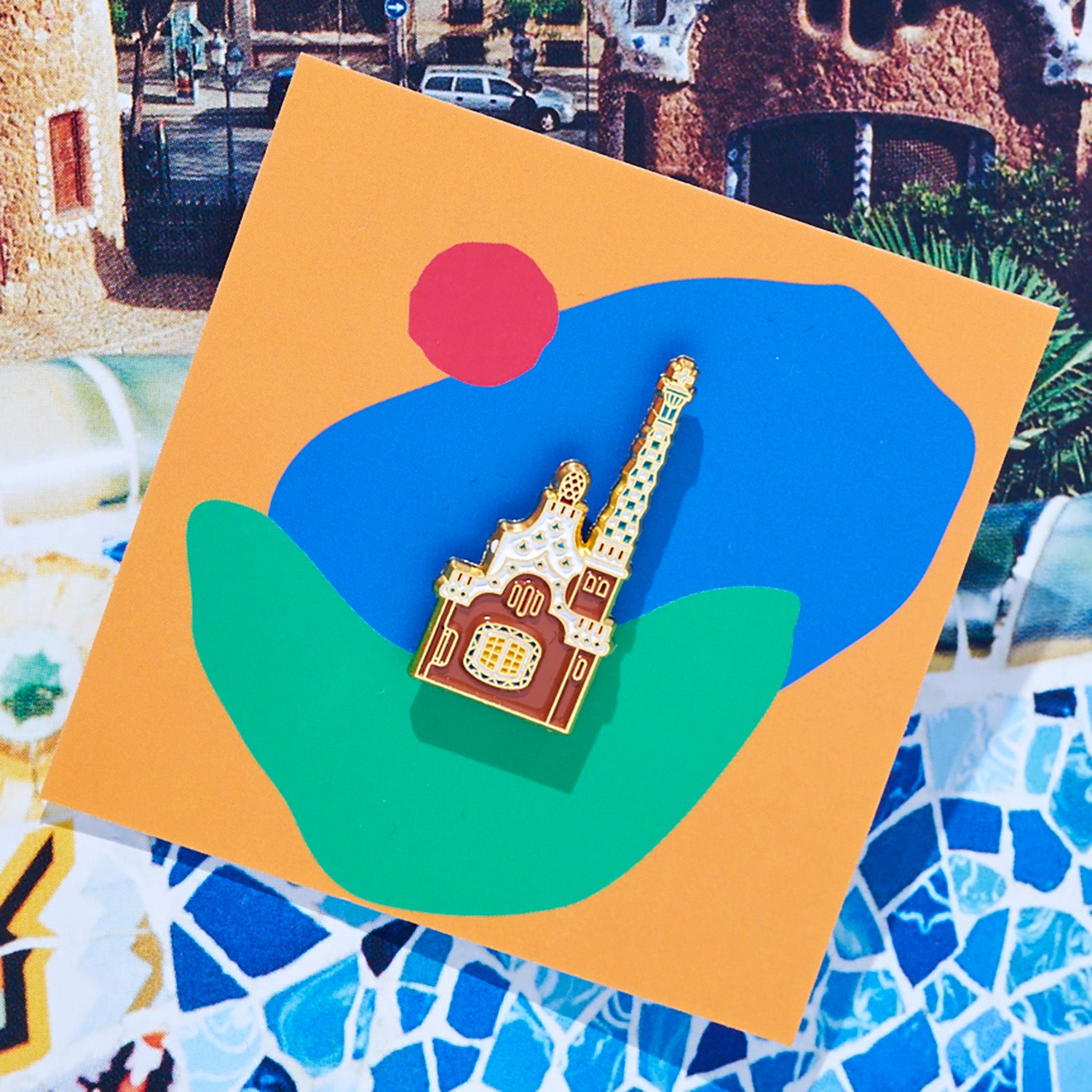 Whimsy in every tile! Metal pin in the shape of Park Güell-inspired mosaics.