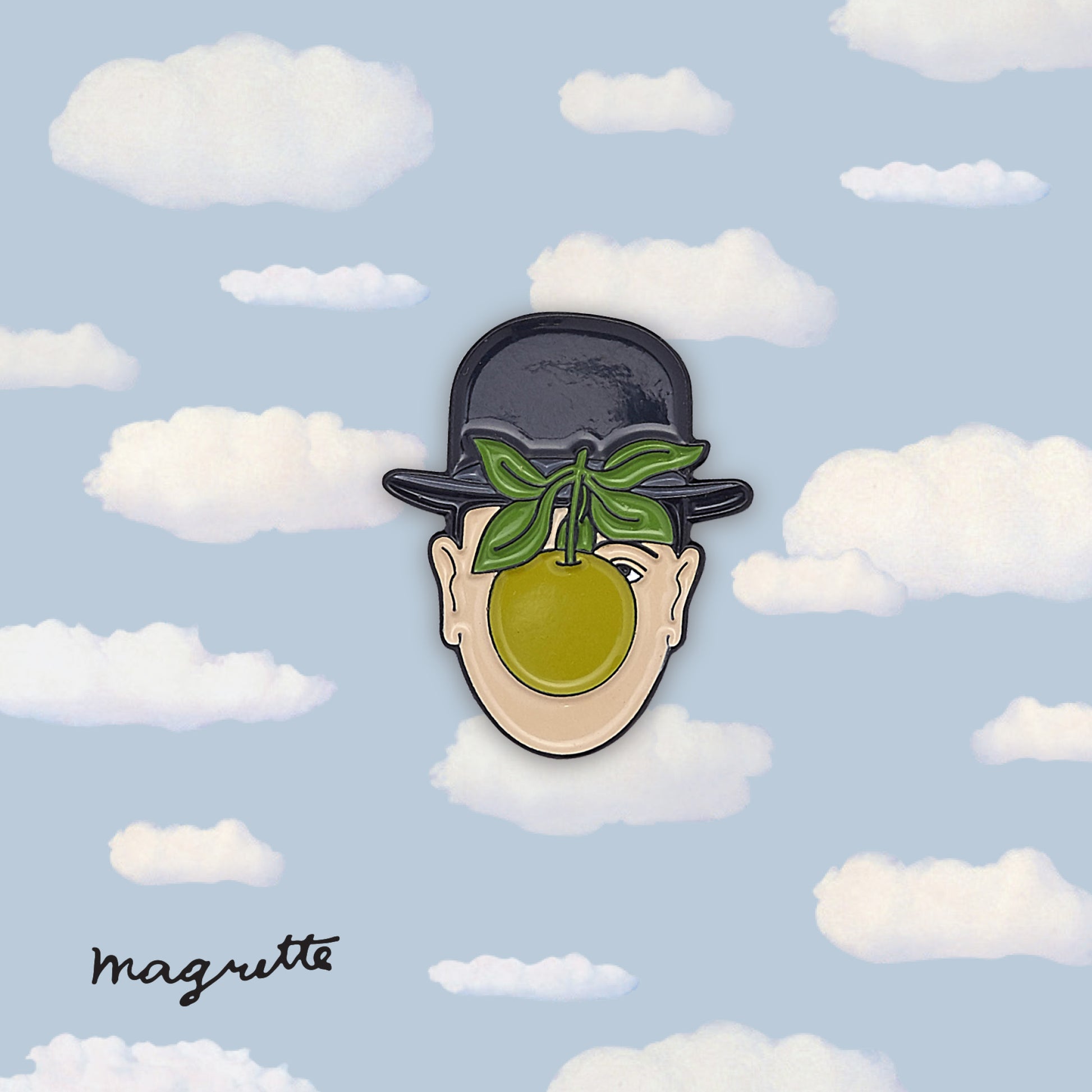 A surreal icon! Metal pin inspired by Le fils de l’homme, 1964, capturing Magritte's signature mysterious style.
