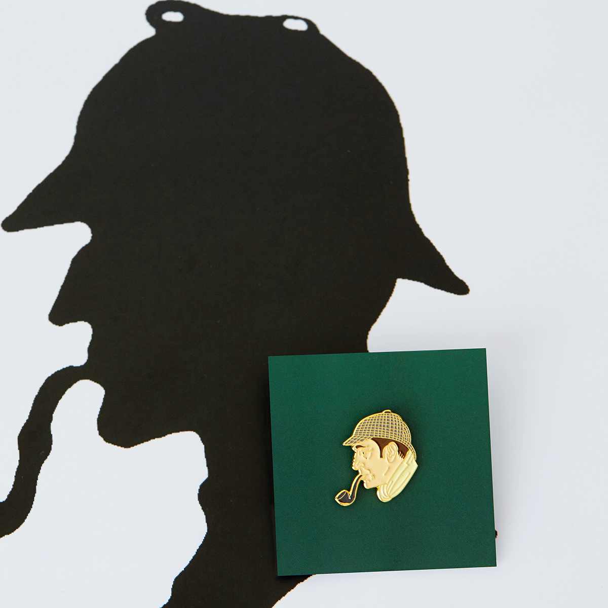 “It's my business to know what other people don’t know”. Metal pin in the shape of the inhabitant of Baker Street 221B Sherlock Holmes.