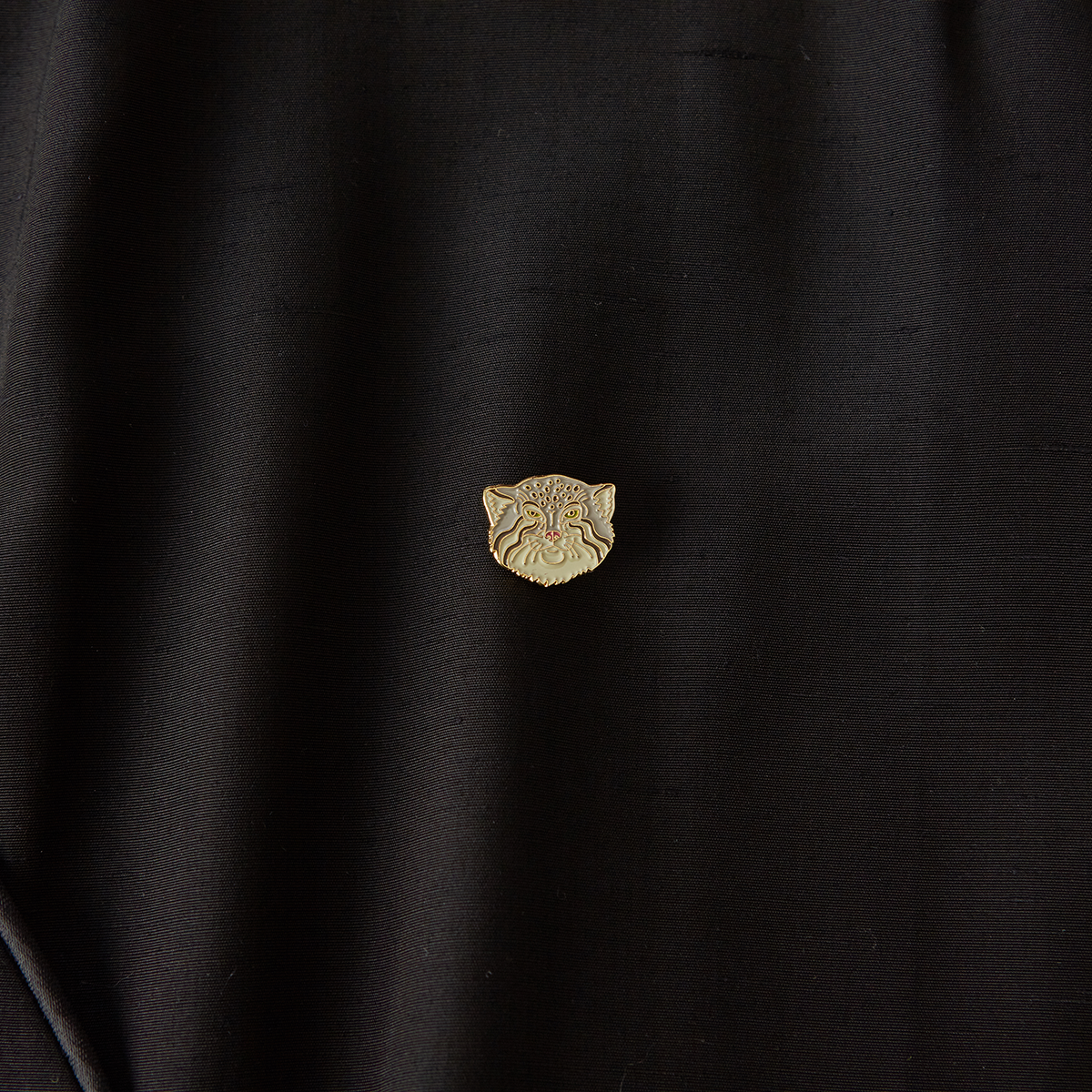 A cat that is just a little wild. Metal pin in the shape of manul.