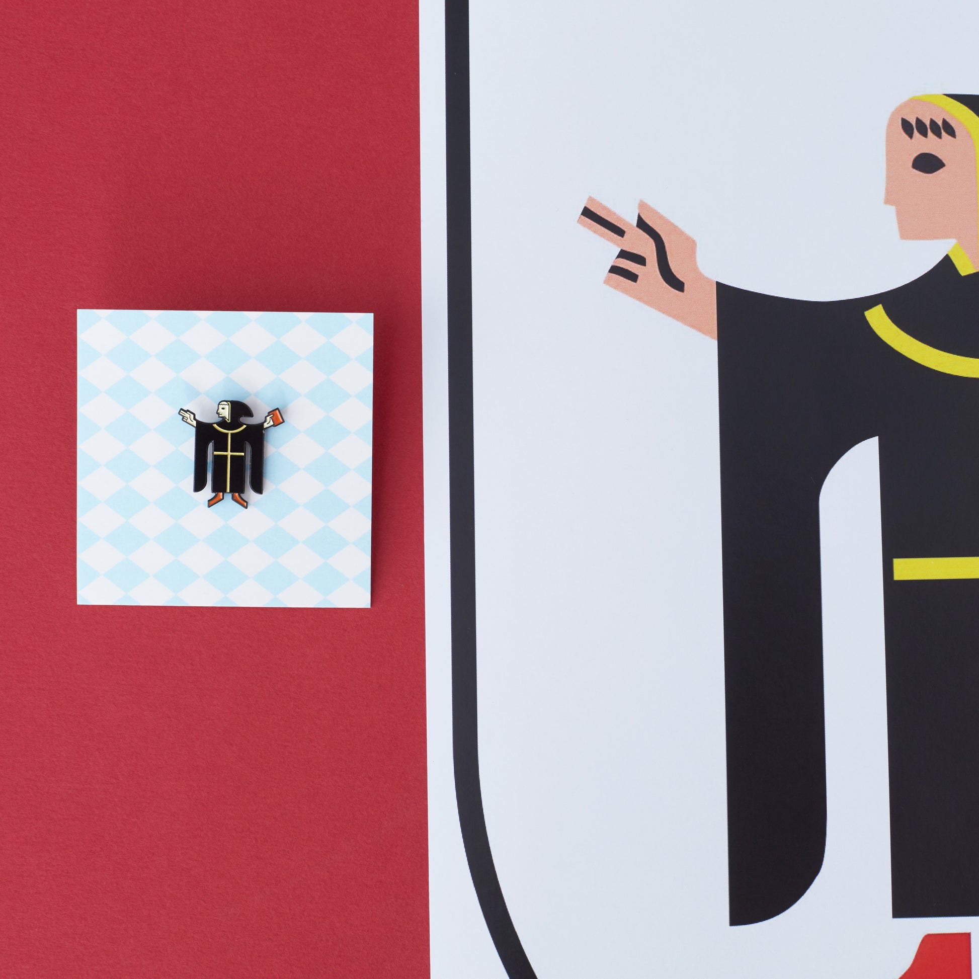 As centuries ago the monks greet you in Munich. Metal pin in a shape of a monk.