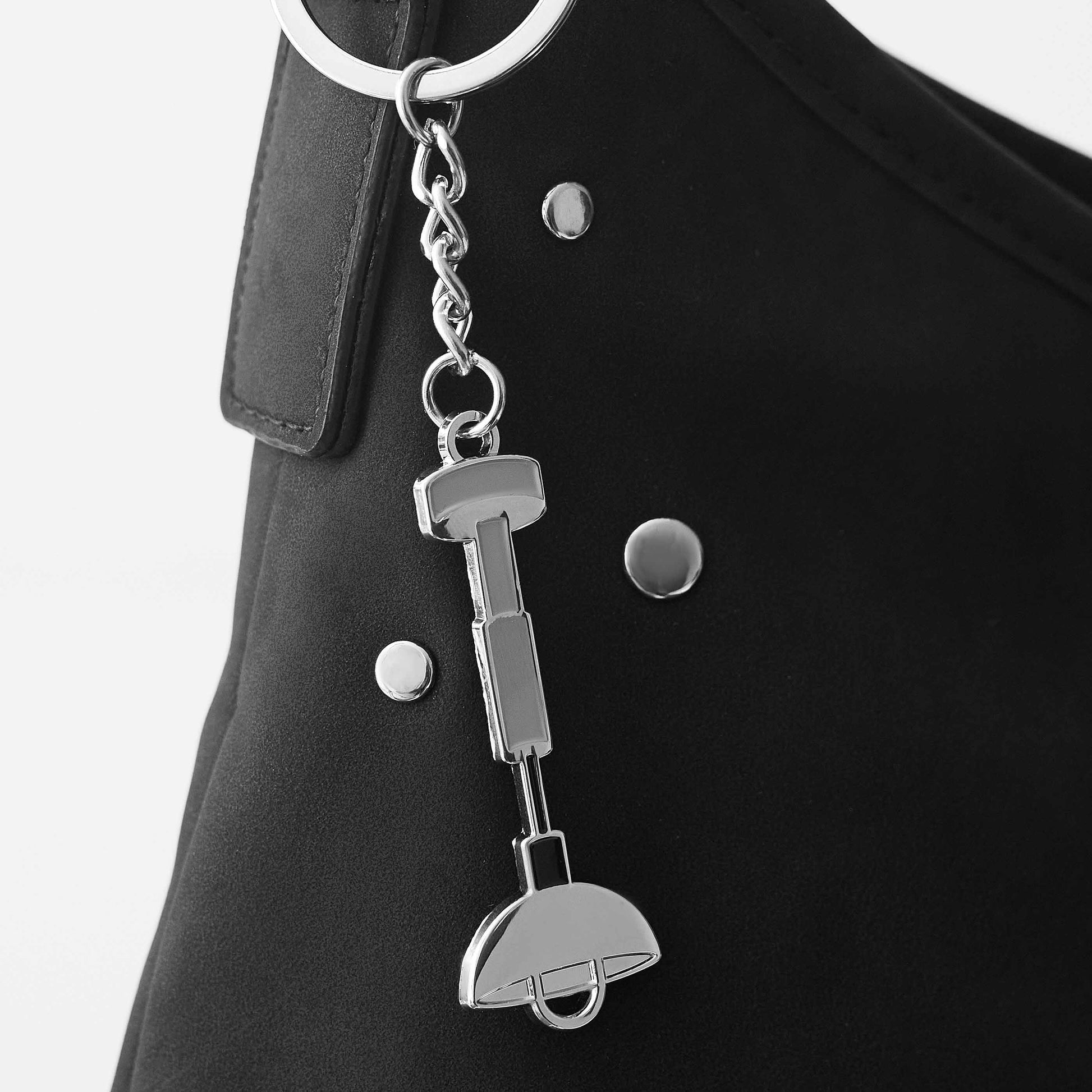 A sleek, industrial lighting icon. Metal keyring featuring the Pendant Light HMB 25/300.
