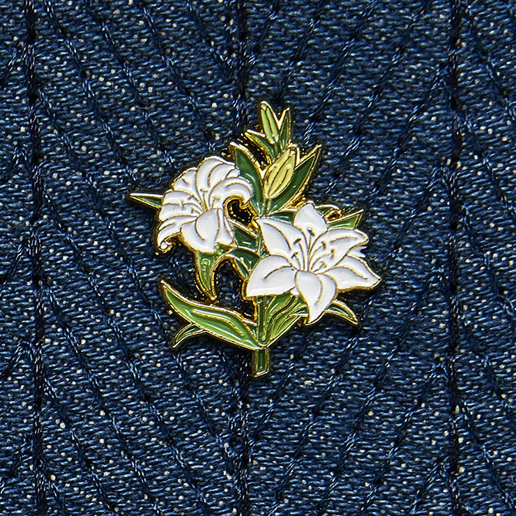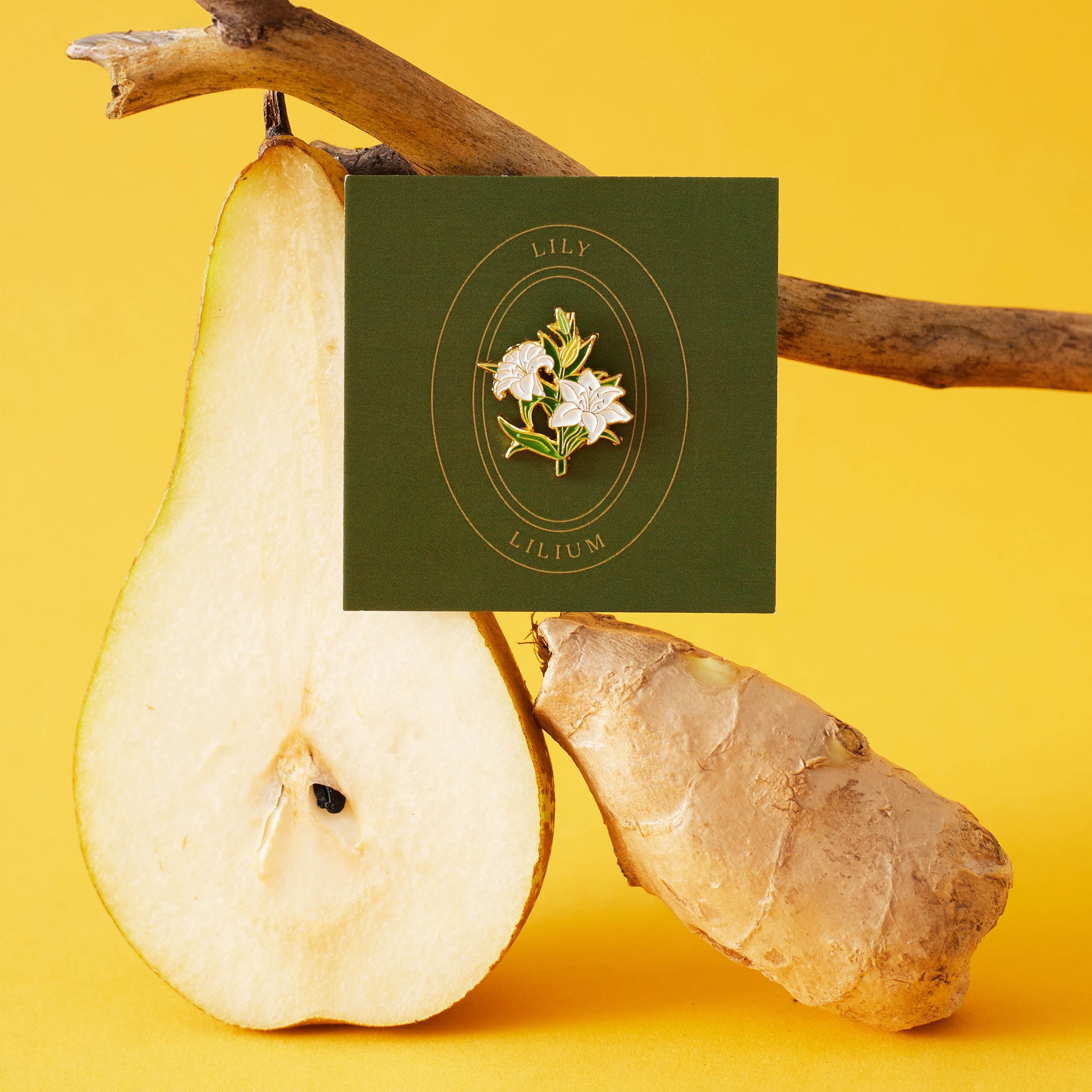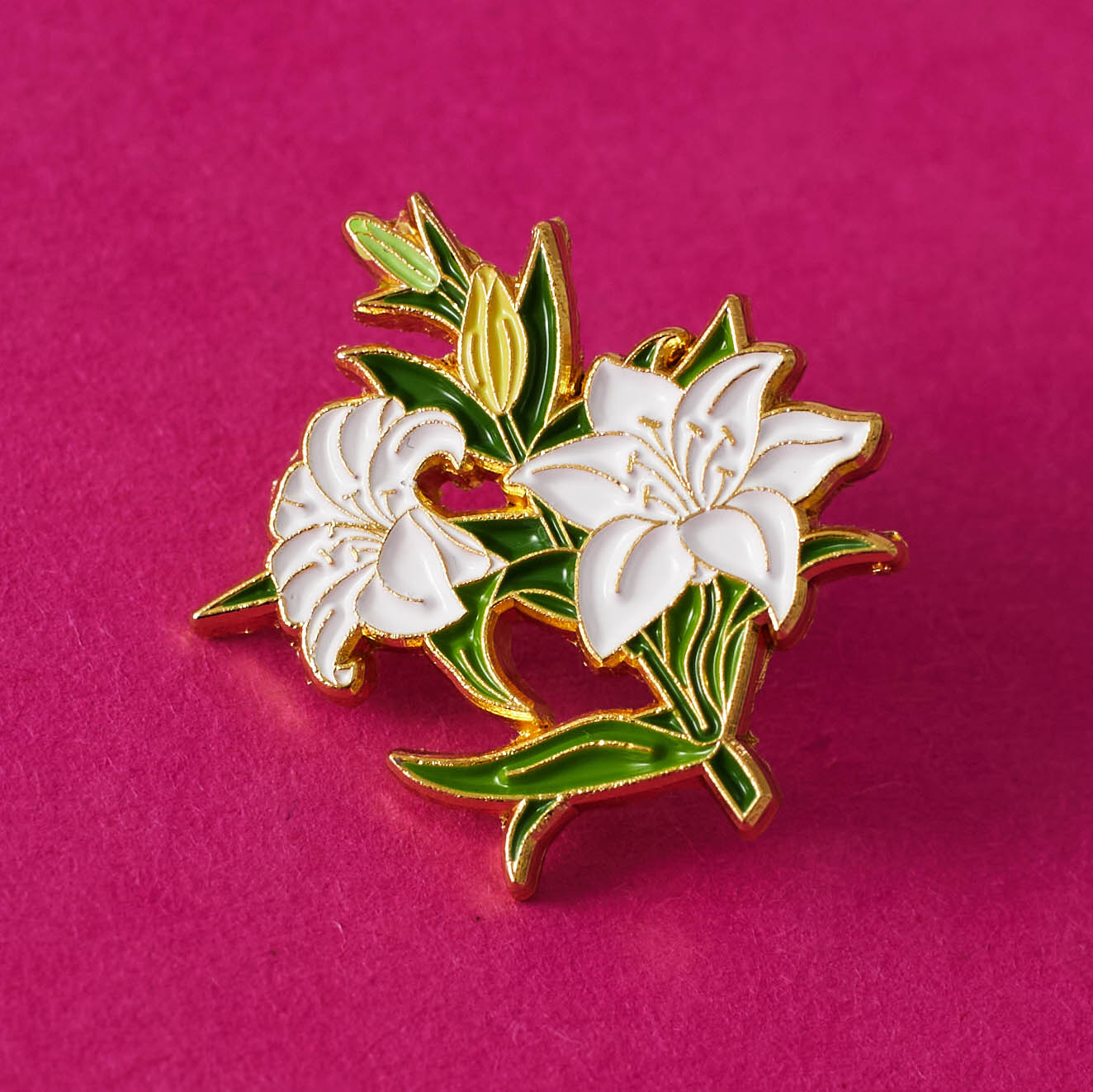 A symbol of purity and timeless grace. Metal pin inspired by the flowing lines of the classic lily flower.