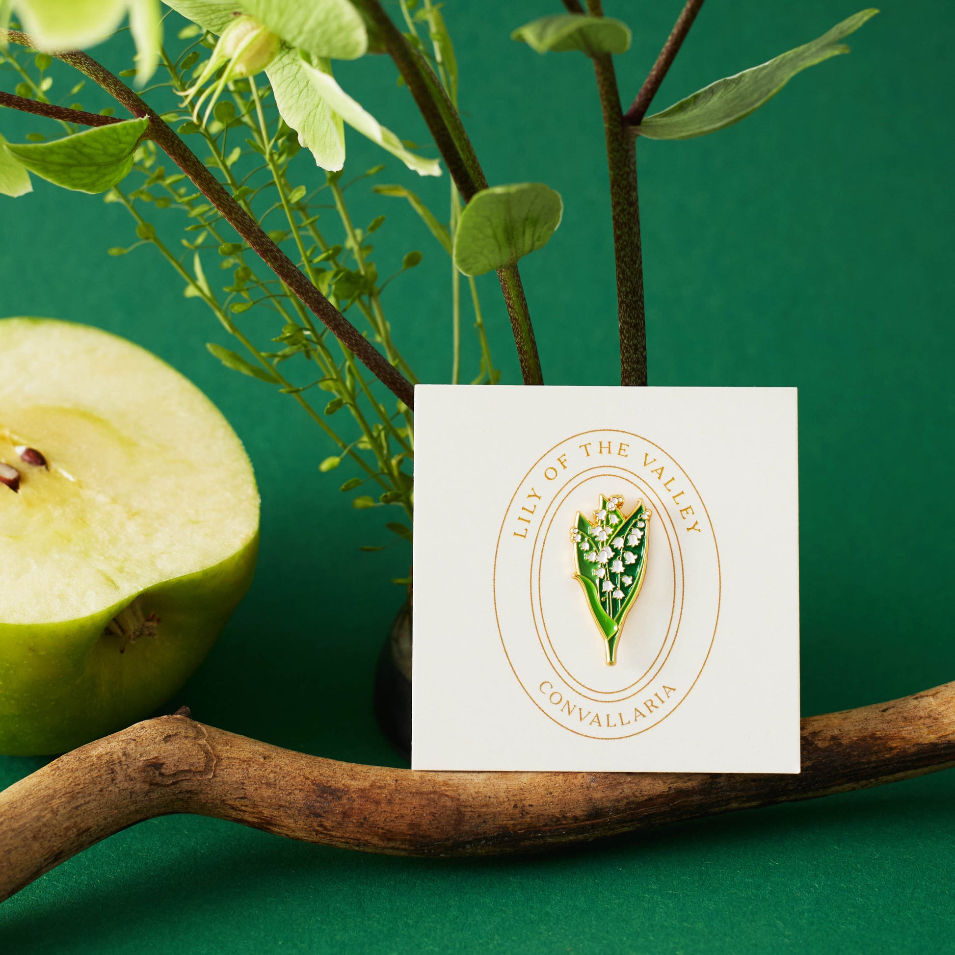 Soft and understated, yet full of charm. Metal pin inspired by the bell-shaped blossoms of lily of the valley.