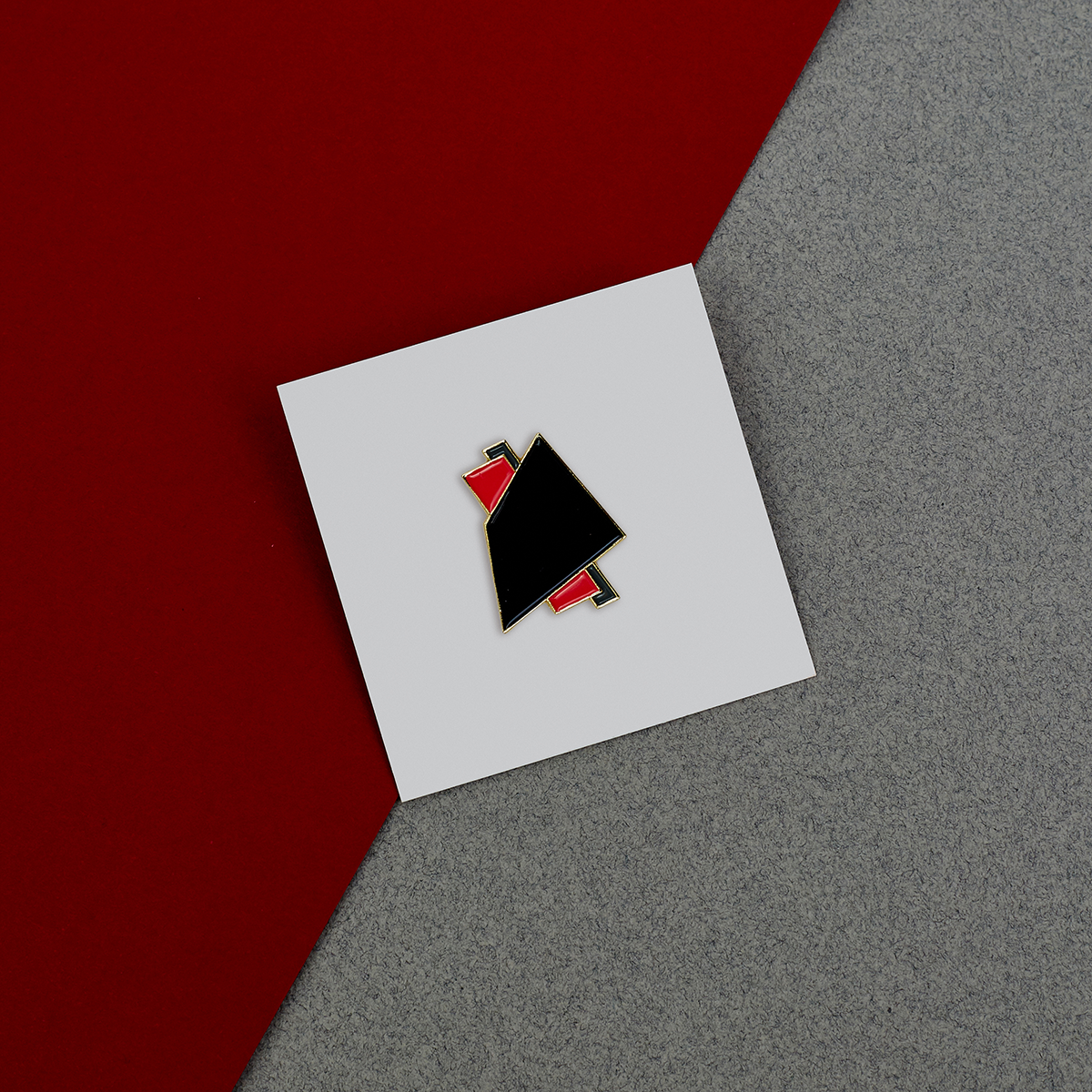 Masterpiece of the Russian avant-garde which will spice up your look. Metal pin in the shape of “Painterly architechtonic. Black, red, grey”, Lyubov Popova, 1916.