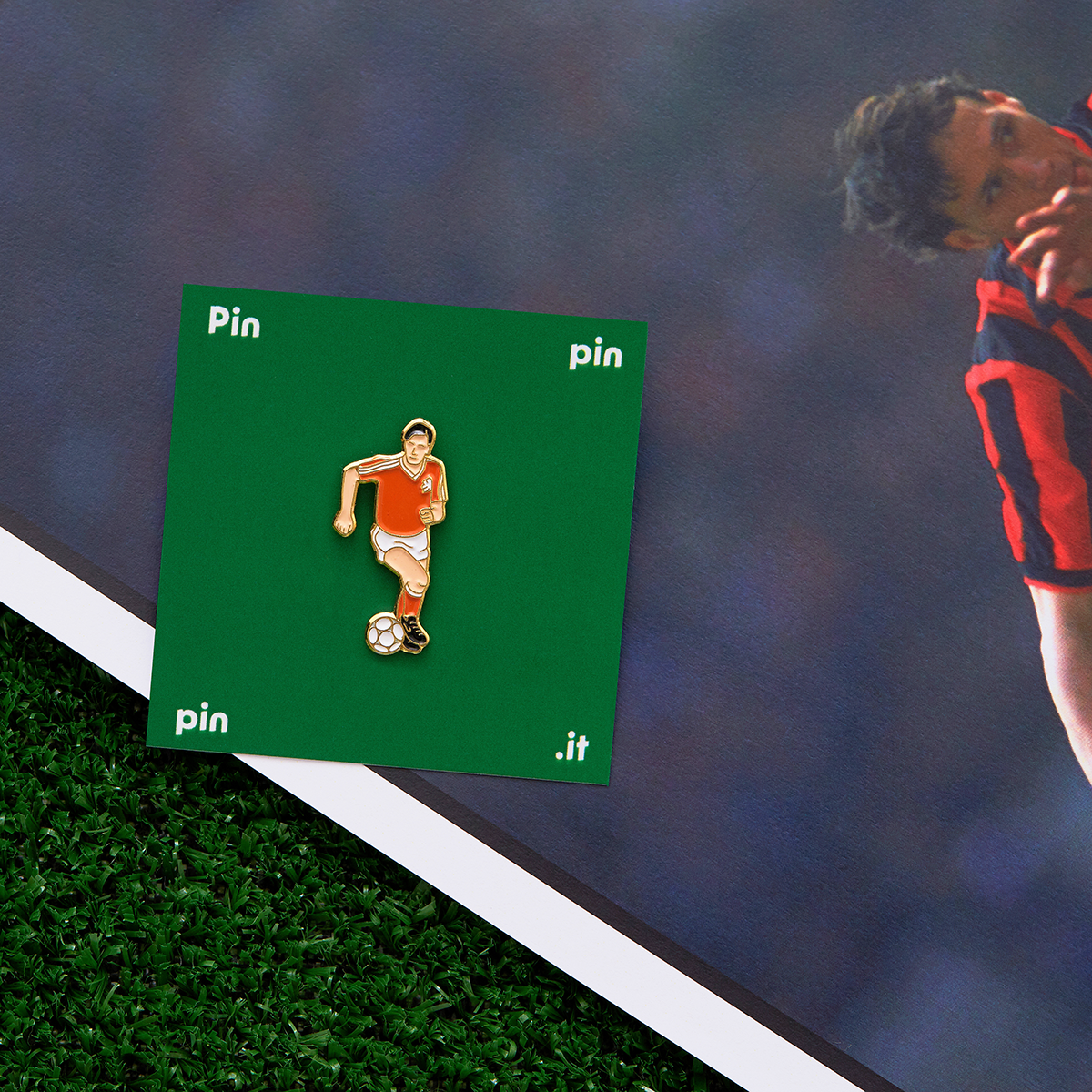 Metal pin from the "World XI" series, which is inspired by the game of legendary football players of the past. Netherlands team player.