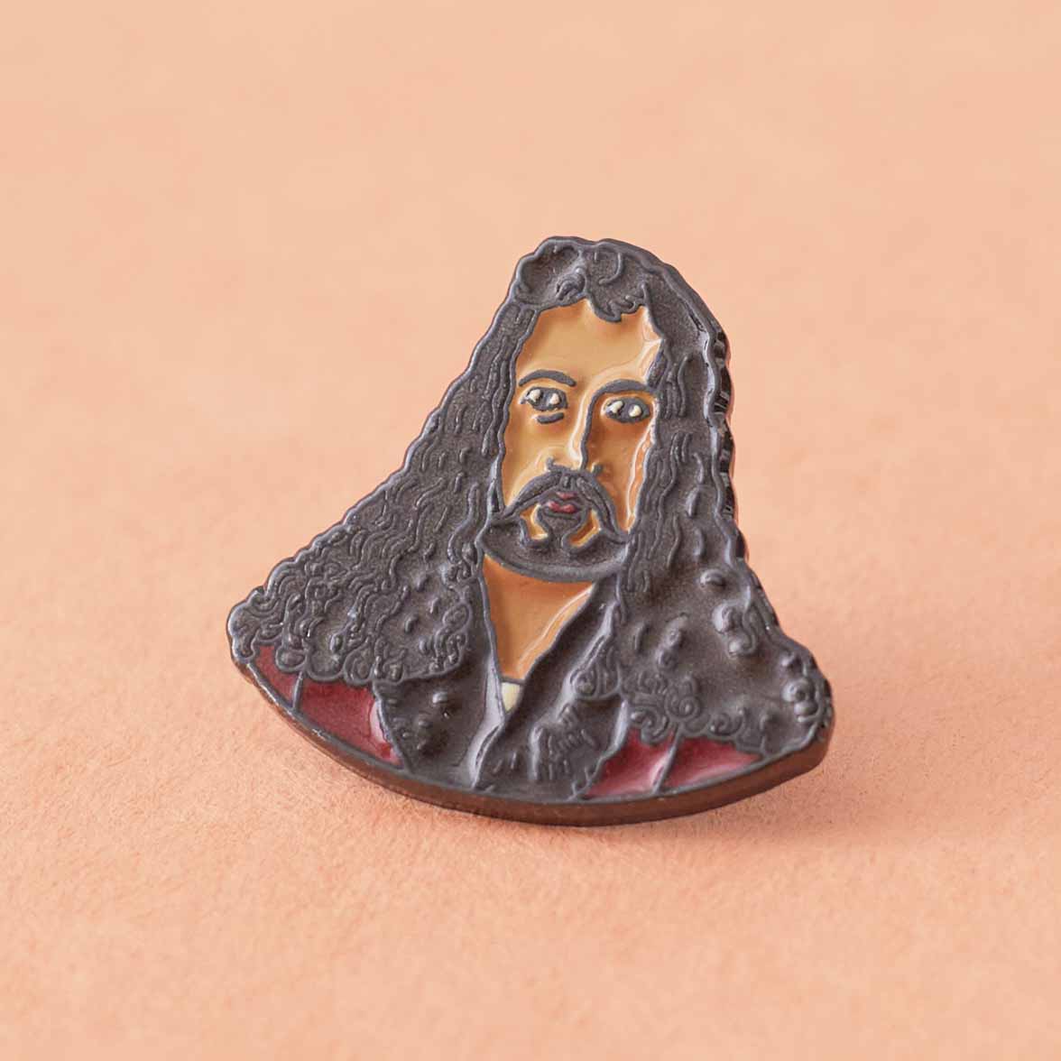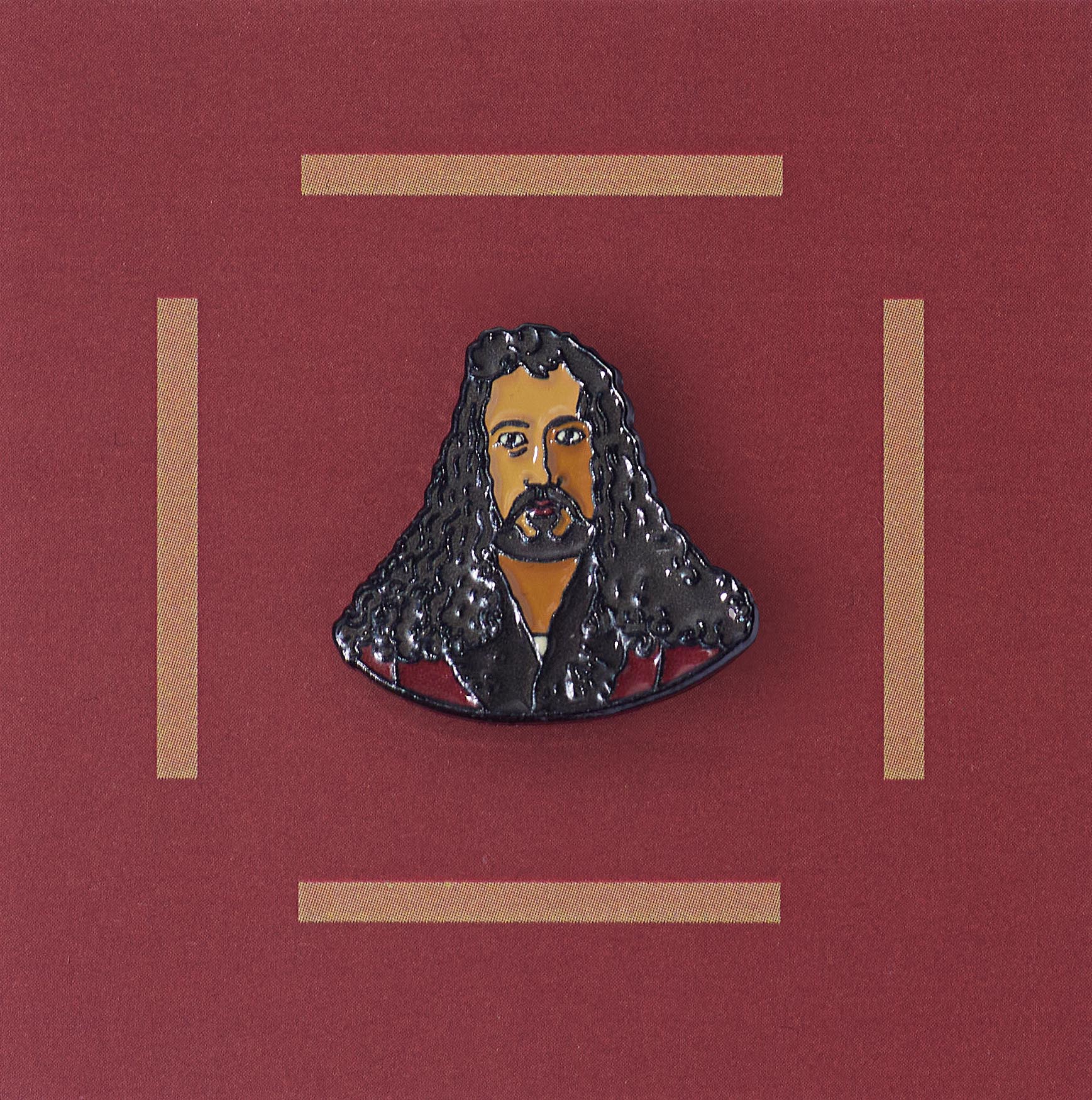 A masterpiece of self-reflection. Metal pin capturing Albrecht Dürer's Self-portrait in Fur-trimmed Clothing, 1500.