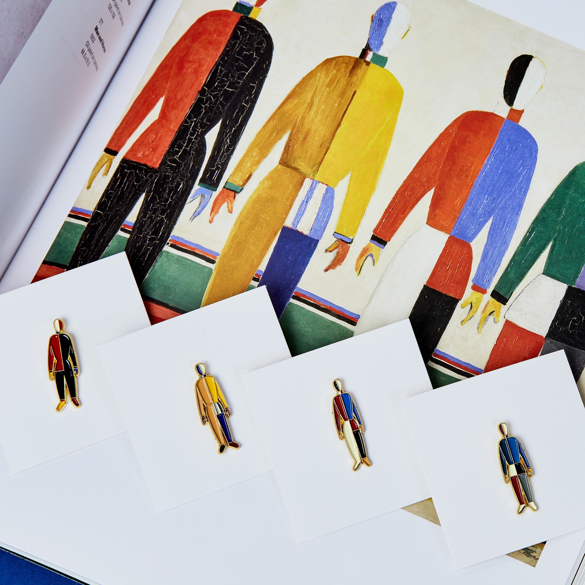 Russian avant-garde masterpiece which you can keep in your jewellery box. Metal pin in the shape of a fragment of the painting “Sportsmen” (4) by Kyiv-born Kazimir Malevich, 1930-1931.