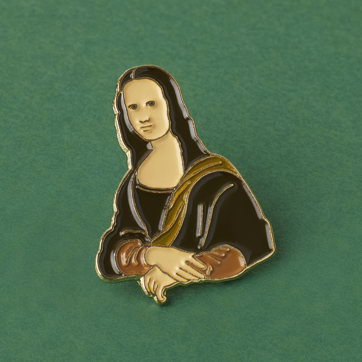 A smile that changed the world. Metal pin inspired by Leonardo da Vinci's Mona Lisa, 1503–1519.