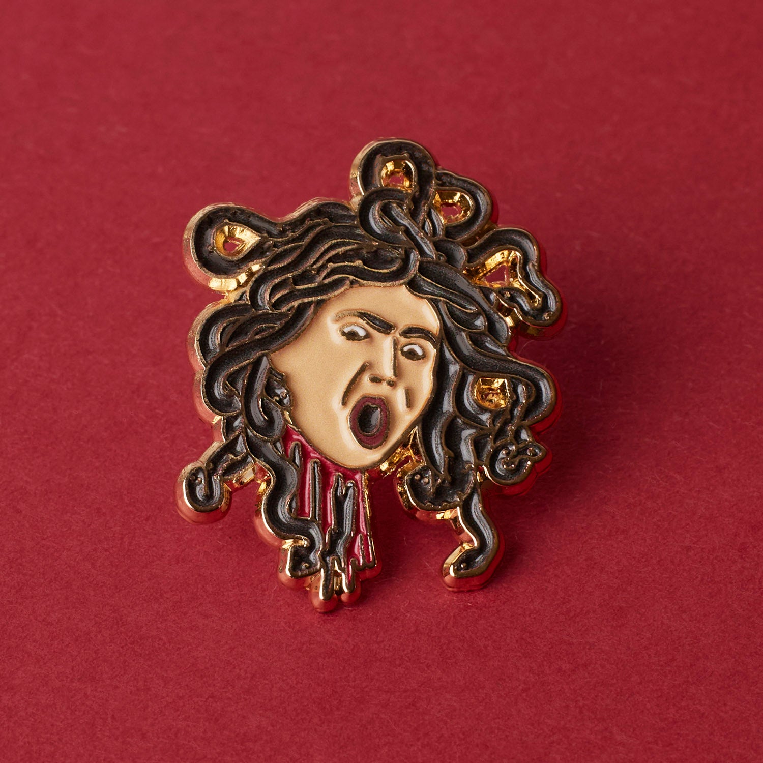 Capturing both beauty and horror. Metal pin inspired by Caravaggio's Medusa, 1597.