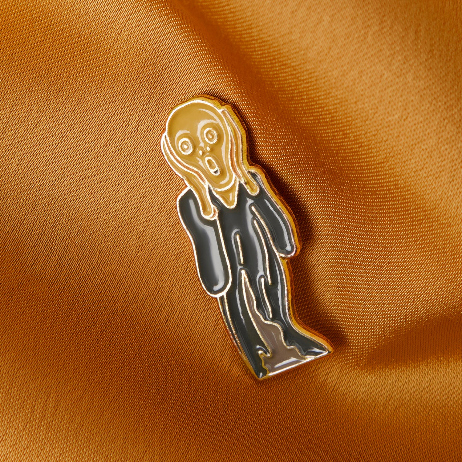 An eternal cry of emotion! Metal pin in the shape of Munch’s The Scream, 1893, an iconic depiction of existential dread.