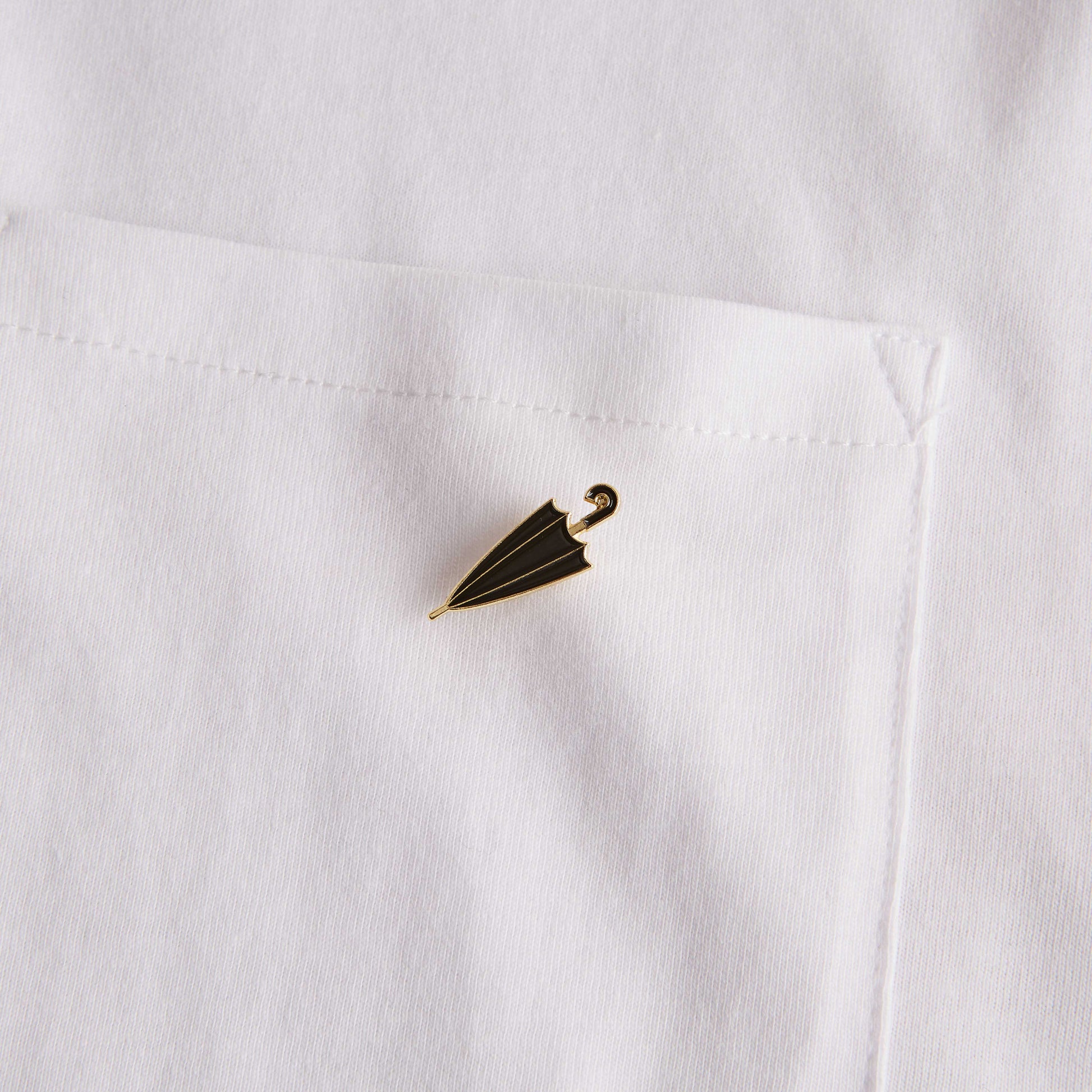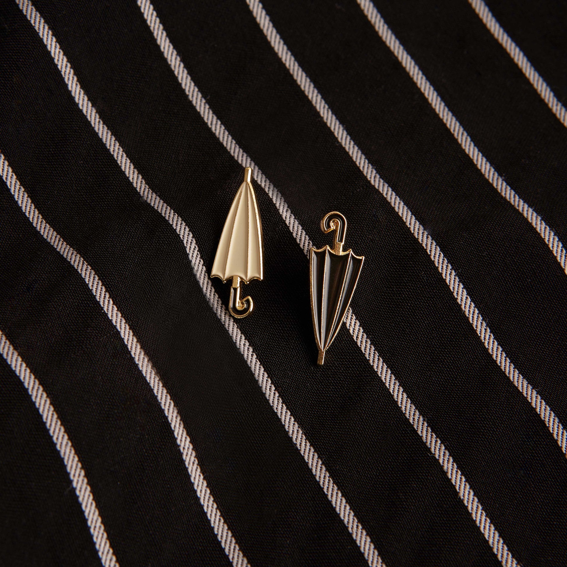 Most essential accessory in Saint Petersburg. Metal pin in the shape of a black umbrella.